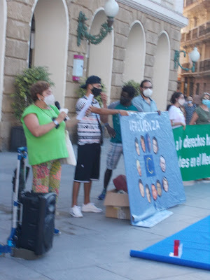 Hoy nos concentramos aquí para seguir mostrando nuestra solidaridad con las víctimas de las fronteras y mostrar nuestra repulsa a las políticas migratorias. Queremos mostrar nuestras condolencias a los familiares de todas las personas que han perdido la vida en el estrecho y el mediterráneo y en especial todas aquellas que han perdido la vida en la ruta hacia las Islas Canarias; una de las más peligrosas y que este mes de agosto se ha cobrado la vida de más de 60 personas de forma trágica.